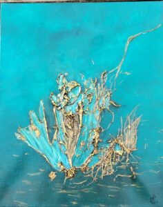 Patricia Chatin explore un art sensible, organique et profondément enraciné dans la nature vendéenne. Elle crée des œuvres uniques à partir d’algues récoltées, séchées, traitées, puis métamorphosées sur toile.
